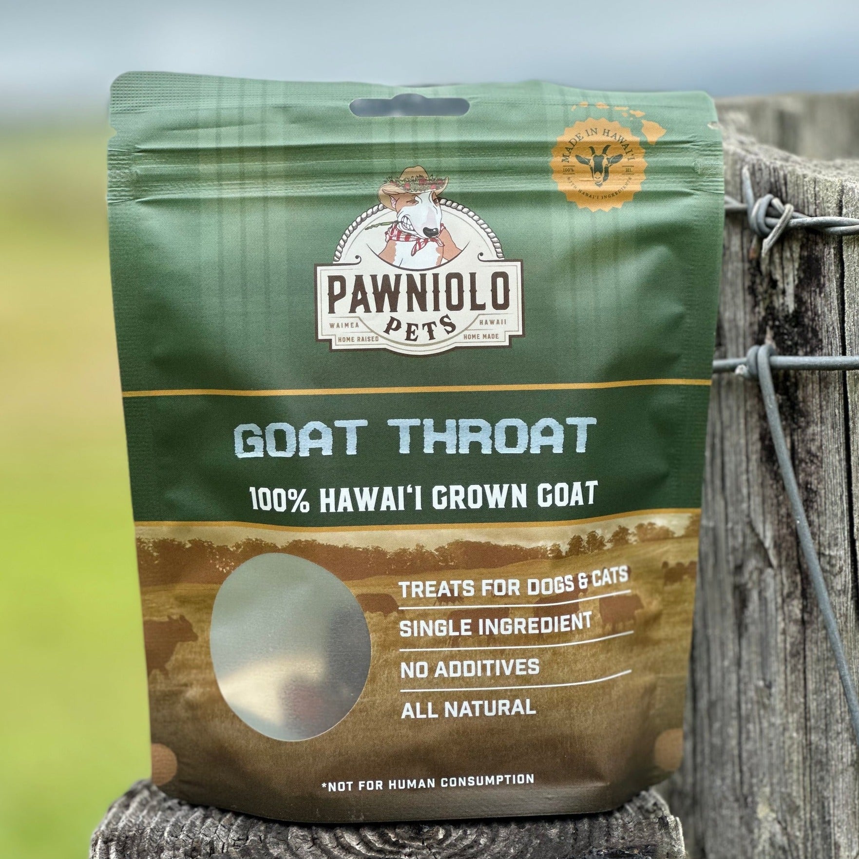 INGREDIENTS:100% Gently Dehydrated Hawai'i Harvested Goat Trachea and Esophagus.